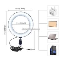 - PULUZ 6.2 inch USB 3 Modes Dimmable LED Ring Vlogging Photography Video Lights with Cold Shoe Tripod Ball Head