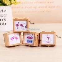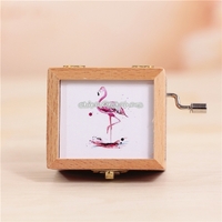 - Flamingo Pattern Retro Style Wooden Hand Cranking Music Box Home Decoration