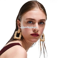 - Vintage Earrings Geometric Statement Texture Metal Hanging Drop Earring