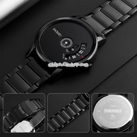 SKMEI 9173 Fashion Trend Skull Head Surface Business Strong Magnetic Buckle Stainless Steel Belt Men Quartz Watch