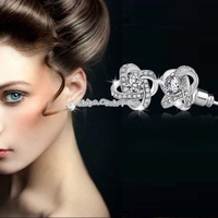 - Crystal Earrings 925 Sterling Silver Knot Flower Stud Earrings for Women Brincos Wedding Jewelry