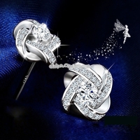Crystal Earrings 925 Sterling Silver Knot Flower Stud Earrings for Women Brincos Wedding Jewelry | x 1 | 2,280 dram |