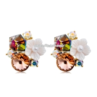 Women Fashion Gold-Plated Inlaid Colored Crystal with White Flower Stud Earrings | x 1 | 4,310 dram |