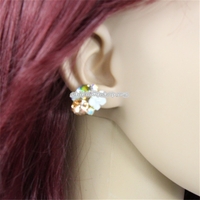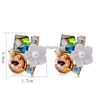- Women Fashion Gold-Plated Inlaid Colored Crystal with White Flower Stud Earrings