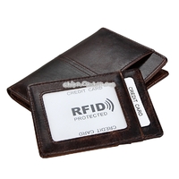 - Antimagnetic RFID Men Oil Wax Leather Wallet with Detachable Card Holder