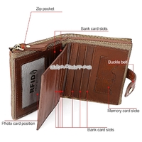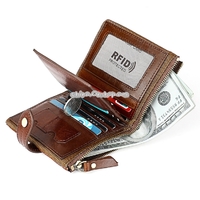 - 8221 Antimagnetic RFID Men Crazy Horse Texture Leather Zipper Wallet