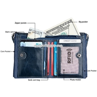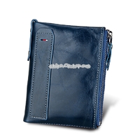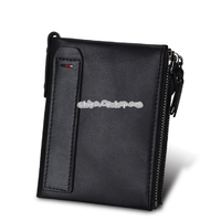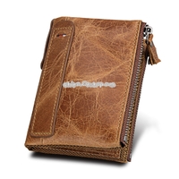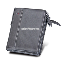 Genuine Cowhide Leather Crazy Horse Texture Dual Zipper Short Style Card Holder Wallet RFID Blocking Card Bag Protect Case for Men, Size: 12.1*9.4*2.7cm | x 1 | 9,970 dram |