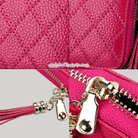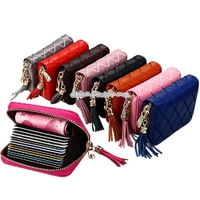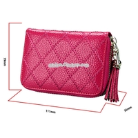 Genuine Cowhide Leather Grid Texture Zipper Card Holder Wallet RFID Blocking Card Bag Protect Case Coin Purse with Tassel Pendant & 15 Card Slots for Women | x 1 | 5,100 dram |