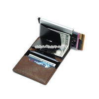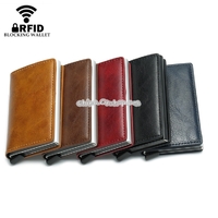 - Automatic Elastic Card Type Anti-magnetic RFID Anti-theft Retro Card Package Universal Leather Metal Wallet