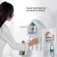 - Bathroom Wall Hanging Small House Toothbrush Holder Toiletries Storage Shelf
