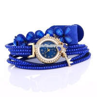 - FULAIDA Round Dial Diamond Flower Bracelet Watch with Flower Shape Key Pendant