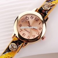 - Women Round Dial Diamond Leather Belt Loop Bracelet Quartz Watch