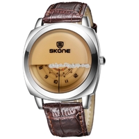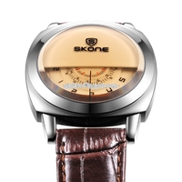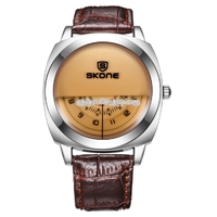 - SKONE 5017 Personalized Halfdial Display 3 Small Dials Shared a Needle Fashion Men Quartz Watch with Genuine Leather