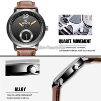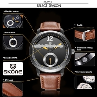 SKONE 5017 Personalized Halfdial Display 3 Small Dials Shared a Needle Fashion Men Quartz Watch with Genuine Leather