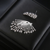 - 1 PCS Women Diamond-shape Silver Flower Fan-sharped Asymmetric Stud Earrings