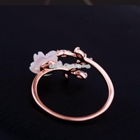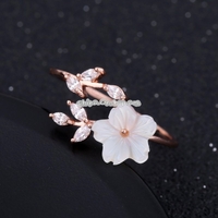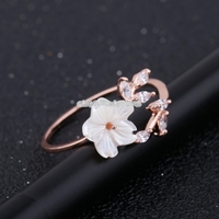 - Rose Gold Beautiful Temperament Zircon Leaves Shell Flower Open Ring