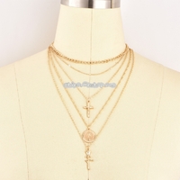 - Fashion Multiple Layers Cross Rose Necklaces for Women Charm Necklace