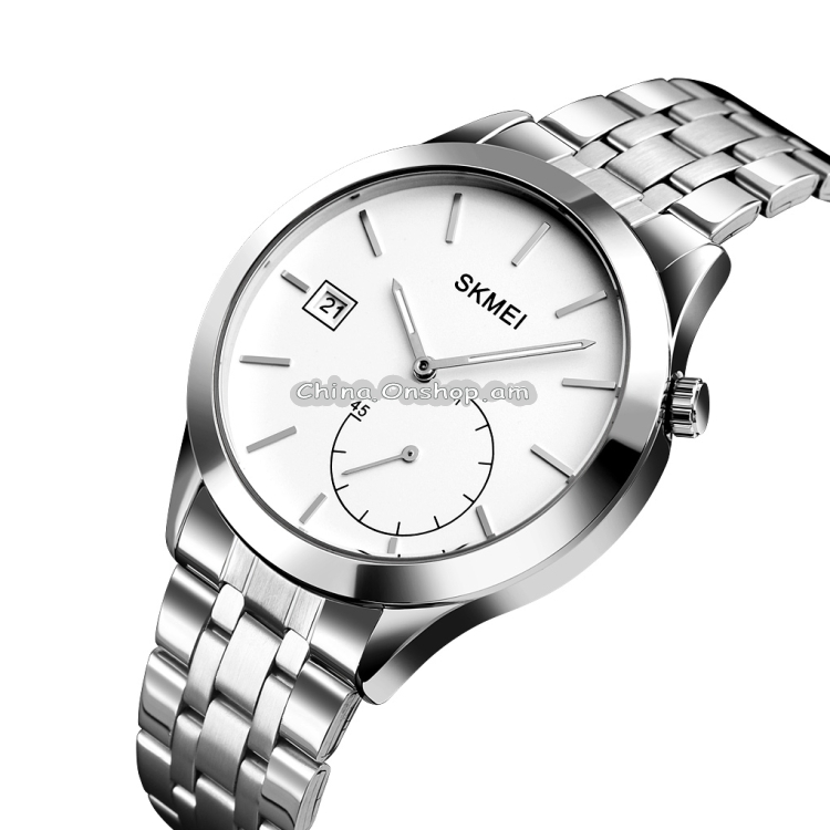 SKMEI 1581 Creative Fashion Men Watch Simple Casual Outdoor Sports Waterproof Two-Pin Quartz Watch(Silver Steel Belt