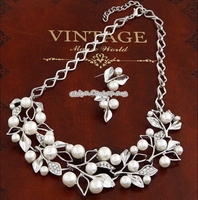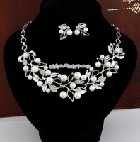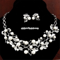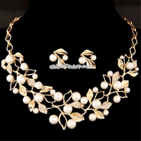 - Leaf Crystal Simulated Pearl Wedding Jewelry Necklaces Earrings Sets