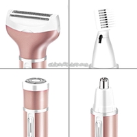 4.This package includes the machine body, women shaver, eyebrow and nose hair trimmer blade, an extra blade for tiny body hair, and USB cable without plug