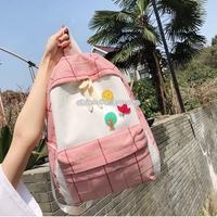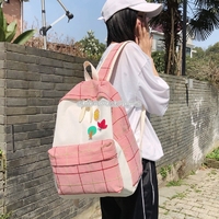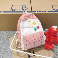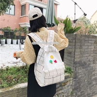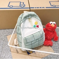 - Large-capacity Fresh Tree and Sun Lattice Pattern Color Matching Casual Double Shoulders Bag Double Zipper Backpack Bag