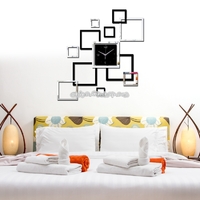 - Living Room Wall Clock Creative Clock Acrylic DIY Mirror Wall Stickers Decorative Black Silver Square DIY Clock