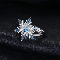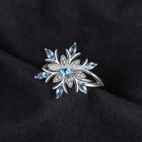 - Fashion 925 Sterling Silver Snowflake Flower Blue Topaz Ring Jewelry Women