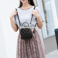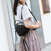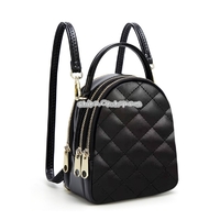 - Rhombus Texture PU Leather Double Shoulder School Bag Travel Backpack