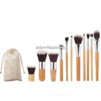 - 11 PCS Nylon Hair Bamboo Handle Makeup Brush Set with Pouch