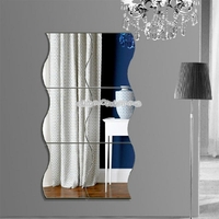 Wall Mirror Acrylic DIY Wave Style Removable Glass Sticker Makeup Mirror Home Bedroom Decorative(Silver) | x 1 | 2,150 dram |