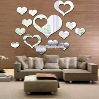 - 5 in 1 Love Shape Mirror Art Decor Wall Stickers Living Room Decoration Wall Decoration Sets