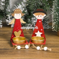 - 2 PCS Christmas Painted Metal Candlestick Accessories Scene Decoration