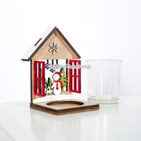 - 2 PCS Christmas Decoration Wooden Three-Dimensional Cabin Candlestick Creative Painted Christmas Tree Ornaments