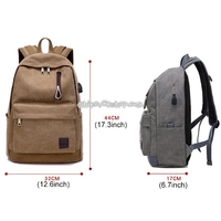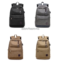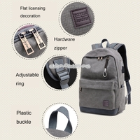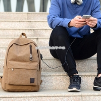- Multi-Function Travel Casual Canvas Backpack Students Bag with External USB Charging Interface & Headphone Jack