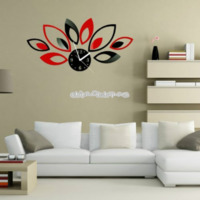 - Flower Art Modern Design DIY Removable 3D Crystal Mirror Wall Clock Wall Sticker Living Room Bedroom Decor