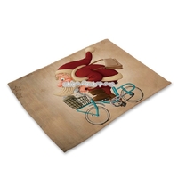 - Printed Cotton Western Food Mat Creative Rectangle Tableware Mat(Bike Santa Claus)