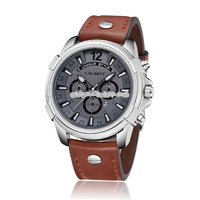 - CAGARNY 6882 Fashion Waterproof Polychromatic Metal Shell Quartz Watch with Leather Wristband