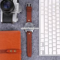 SKMEI Nail Scale Round Dial Small Function Second Dial Calendar Display Men Sport Quartz Watch with Genuine Leather