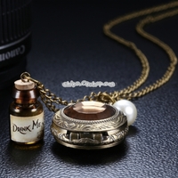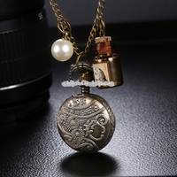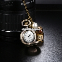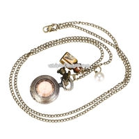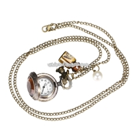 - JIANGYUYAN Round Dial Bronze Pattern Retro Peter Rabbit Header Wishing Bottle Pearls Quartz Pocket Watch with Alloy Chain