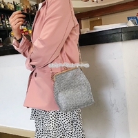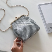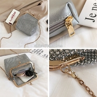 - Fashion Rhinestone PU Chain Single Shoulder Bag Ladies Clips Handbag Messenger Bag