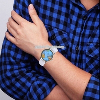 - Leisure Style Round Dial Quartz Movement World Map Pattern Printing Plane Rotary Cowboy Dress Wrist Watch with Leather Band for Men / Women / Students(White)