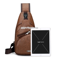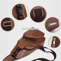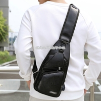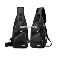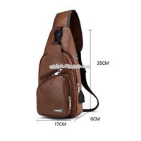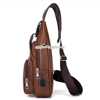 - Waterproof Leisure PU Leather Single Shoulder Bag Men Chest Bag with USB Charging Port and Headphone Hole