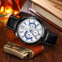 - CAGARNY 6826 Fashionable Quartz Business Sport Wrist Watch with Leather Band & 24-hour Indication & Calendar Function for Men