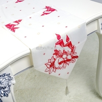 - Christmas Fabric Print Table Flag Decorations Candle Red