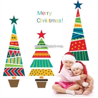- Colorful Cartoon Christmas Tree Wall Sticker Shop Window Living Room Christmas Decoration