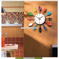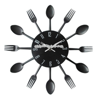 - Cutlery Metal Kitchen Wall Clock Spoon Fork Creative Quartz Wall Mounted Clocks Modern Design Decorative Horloge Black