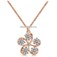 - Rose Gold Five Petals with Crystal Pendant Necklace, Chain Length: 43cm