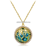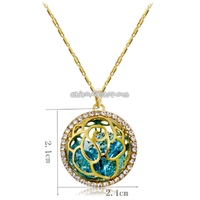 - Gold Cutout Sphere with Blue Crystal Outer Ring and Zircon Necklace, Chain Length: 44cm
