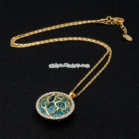 Gold Cutout Sphere with Blue Crystal Outer Ring and Zircon Necklace, Chain Length: 44cm | x 1 | 6,690 dram |