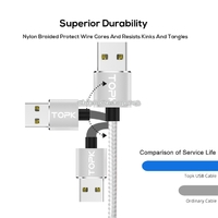 TOPK 2m 2.4A Max USB to 8 Pin + USB-C / Type-C + Micro USB Nylon Braided Magnetic Charging Cable with LED Indicator | x 1 | 3,740 dram |